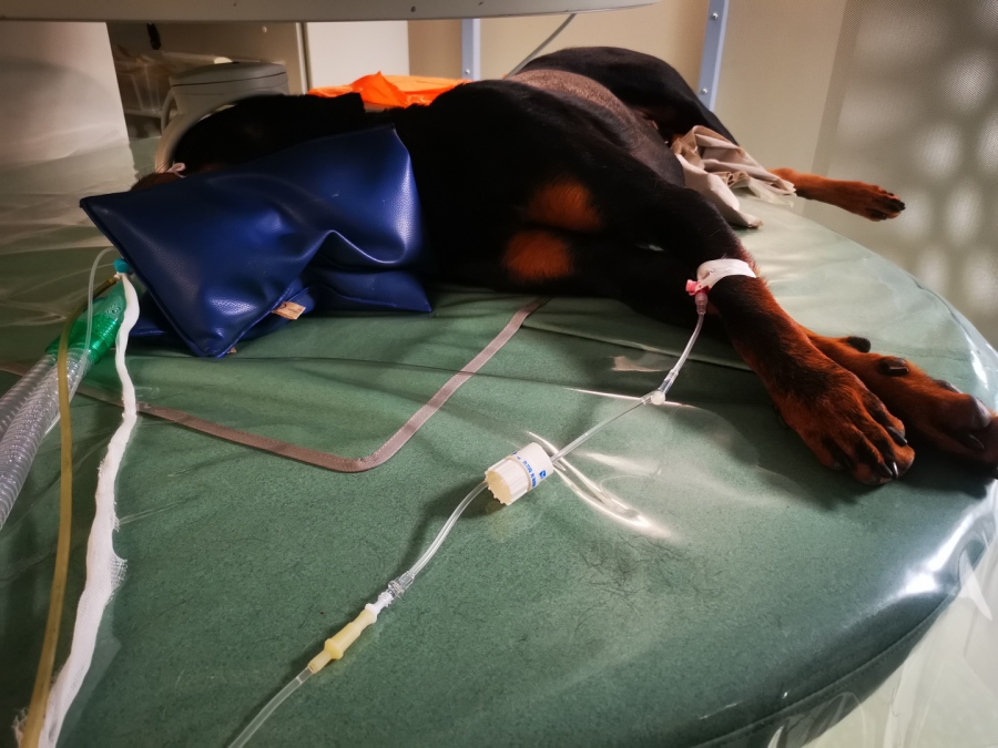 Nicht-invasive, schmerzlose Bildgebung von Weichteilgewebe (z.B. Gehirn, Rückenmark, Bandscheiben, periphere Nerven). Durch Kontrastgabe kann gezielt Störungen der sogenannten Blut-Hirn-Schranke dargestellt werden, was allgemein als Zeichen schwerer Entzündungen oder Neubildungen (z.B. Gliome = Tumore der Gliazellen) gewertet wird. Der Patient muß sediert oder in Narkose gelegt werden. Die Befundung der MRT-Untersuchung erfolgt sofort und wird mit den Besitzern einschliesslich Therapieoptionen ausführlich durch Dr. Bittermann oder Dr. Deutschland besprochen.